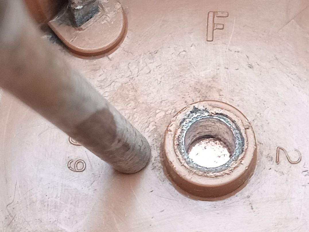 6.5 mm drill bit, pull out the old spring at the base, clean