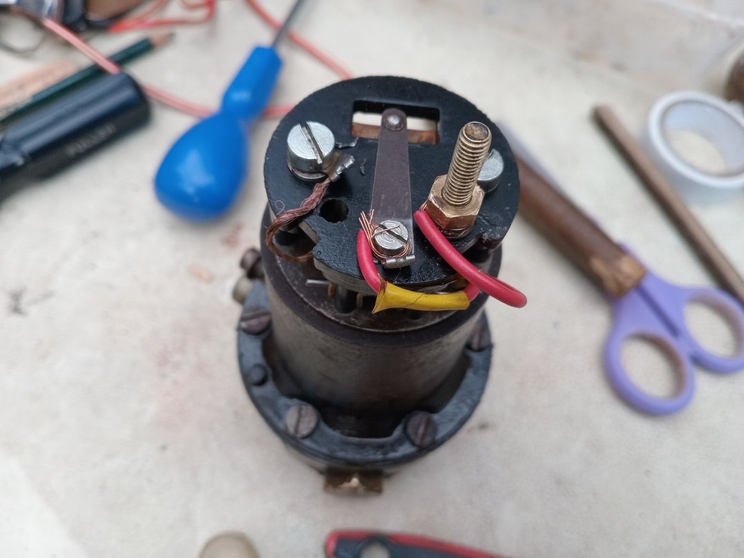 The 1/4" copper sleeve now holds the spring for the brush in and